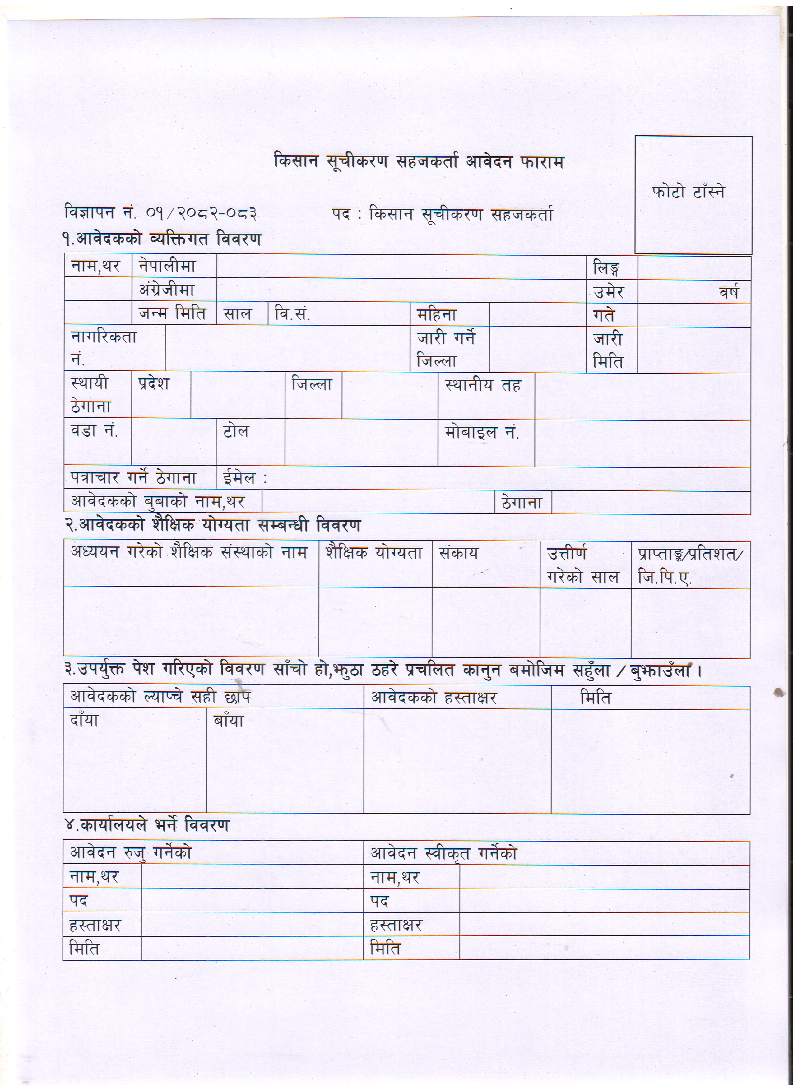 पोखरा महानगरपालिकाको किसान सूचीकरण सहजकर्ता छनौट आवेदन फाराम ||