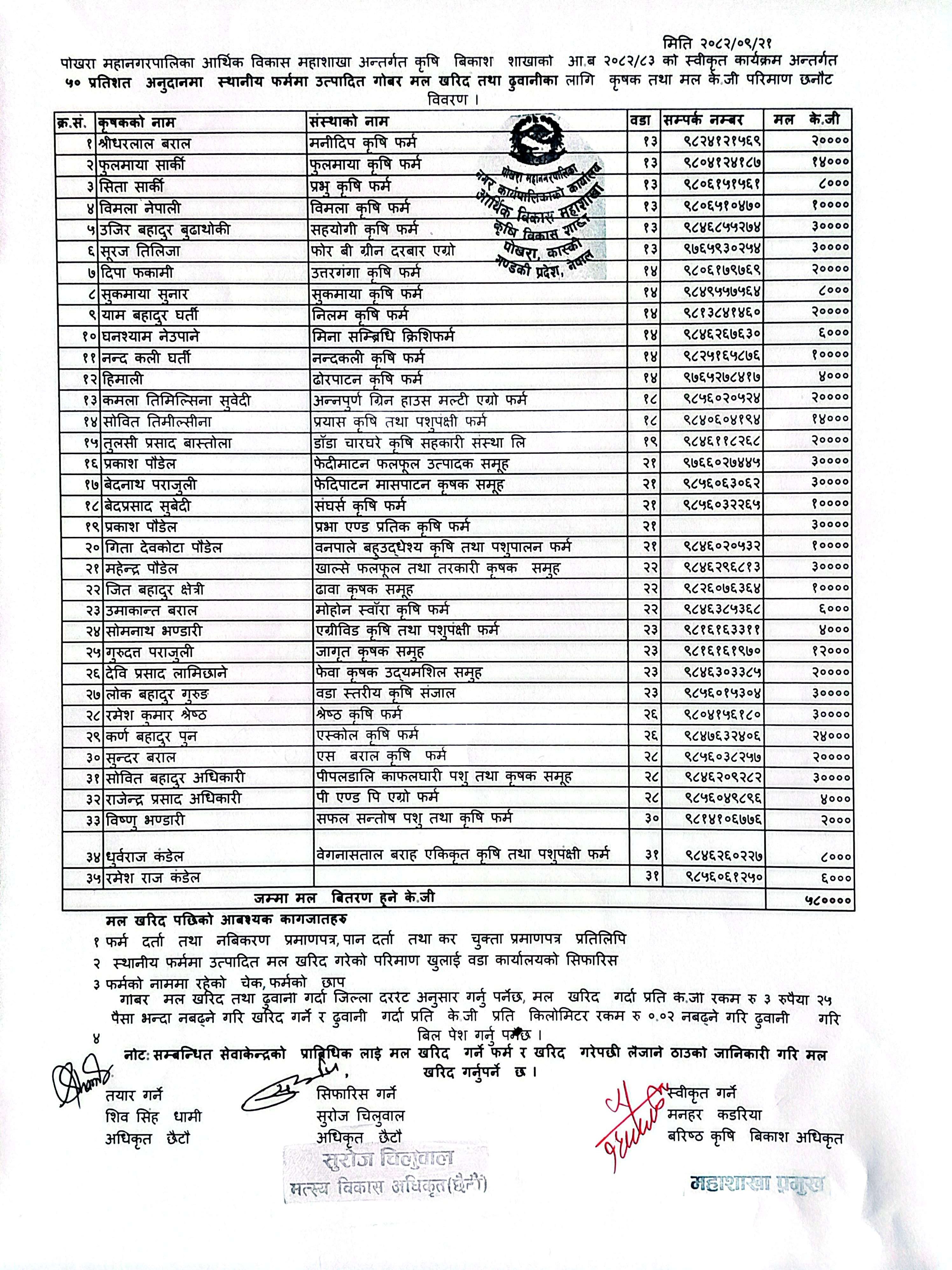 File: पोखरा महानगरपालिका कृषि विकास शाखाको ५० प्रतिशत अनुदानमा स्थानीय फार्ममा उत्पादित गोबर मल खरिद तथा ढुवानीका लागि छ्नौट विवरण ।Date: Tuesday, January 6, 2026
