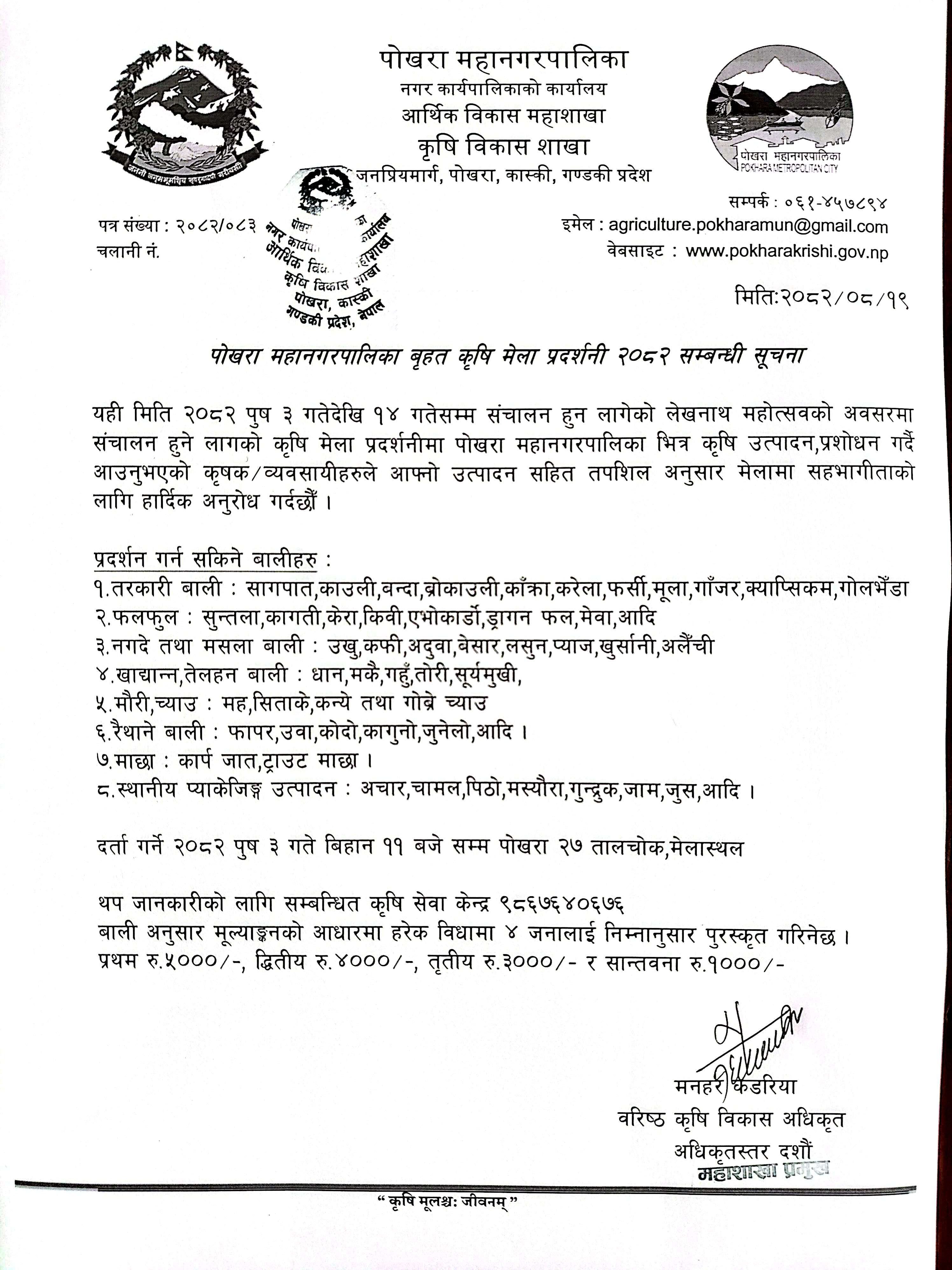 File: लेखनाथ महोत्सवको अवसरमा महानगरस्तरीय बृहत् कृषि बाली प्रदर्शनी सम्बन्धि सूचना ।Date: Saturday, December 5, 2026